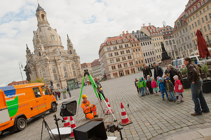 Interessierte Zuschauer hatten wir u. a. durch eine Kindergartengruppe. Die Kids haben unser Fotoprojekt bei Ihrem Wandertag entdeckt und viele tolle Fragen gestellt. Ein Kind fragte zum Beispiel ganz interessiert: Was ist eigentlich Abwasser? Torsten Fiedler – Pressesprecher von der Stadtentwässerung Dresden GmbH hat alle Fragen beantwortet und die Kinder waren happy.